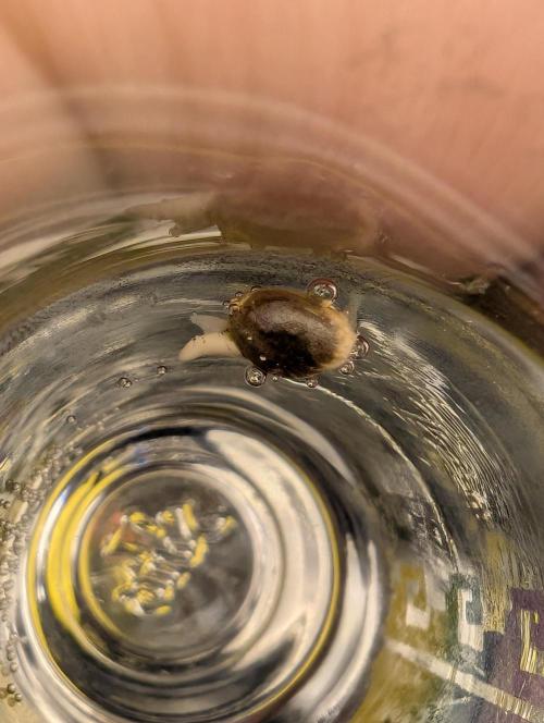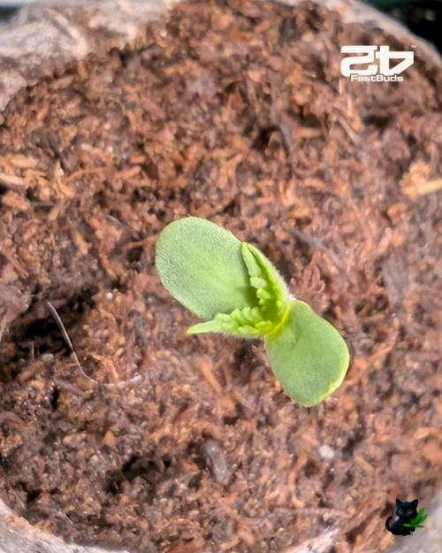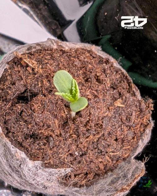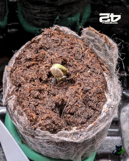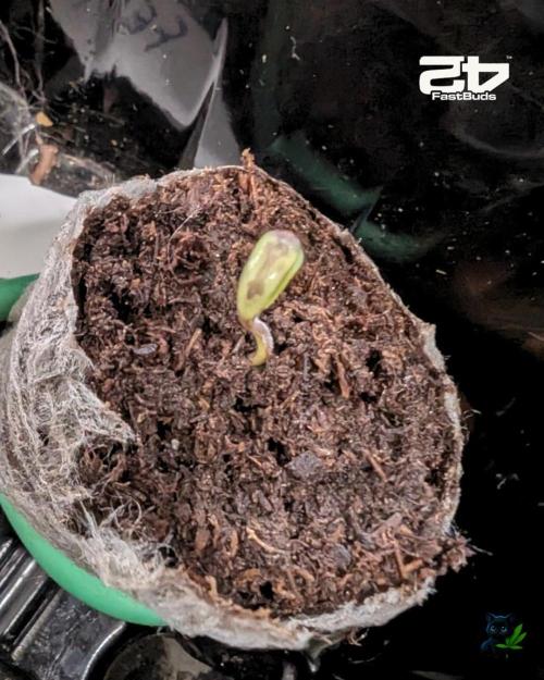 Was ready for her 4 inch pot. Sprinkled connect, 60 ml water around the outside of the puck.