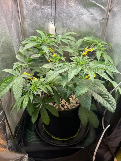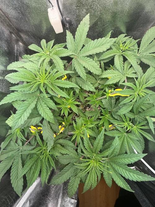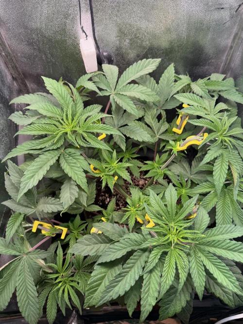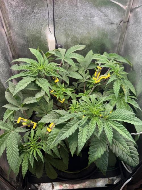 Die Lady macht sich großartig. Mit Budclips versuche ich so gut es geht das kleine Zelt zu füllen. Ich habe bin heute bei 14 Stunden Licht und 10 Stunden Dunkelheit. Jeden Tag gibt es jetzt eine Stund weniger Licht nachdem von 18 auf 16 und dann zwei Tage 14. Das folgt keinem Plan habe ich halt dieses mal so gemacht. Alle läuft dieses mal viel besser in diesem minigrow. Gefüttert wird nach Canna Terra Feedingchart mit einem EC - 1.3 und einem PH - 6.0 bei 600ppfd Licht. Bisher macht die Blue Razzsicle alles mit und hat einen sehr schönen Wuchs. Ich hätte lieber die sehr gedrungene Red Hot Violet ins kleine Zelt stellen sollen aber das die schon im 16 Liter Topf ist geht das nicht mehr. Bis näcstes Wochenende. Ich wünsche euch gesunde Pflanzen und eine entspannte Arbeitswoche.👍