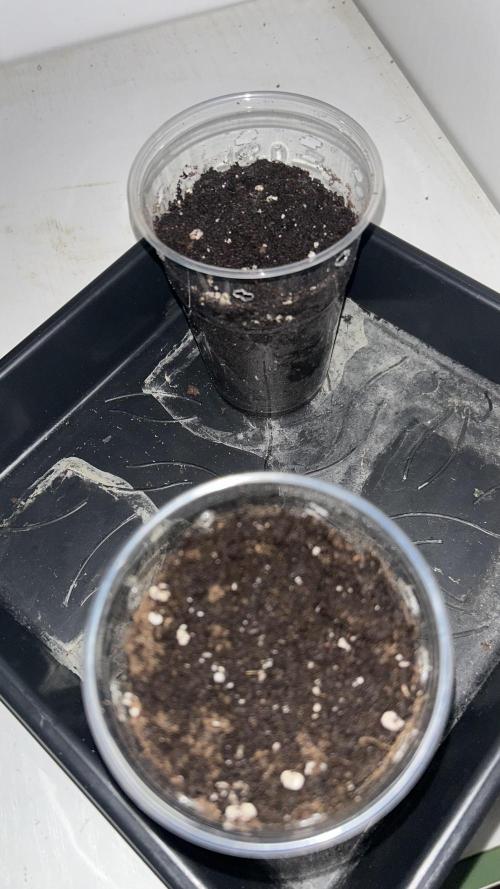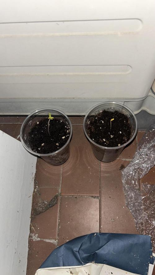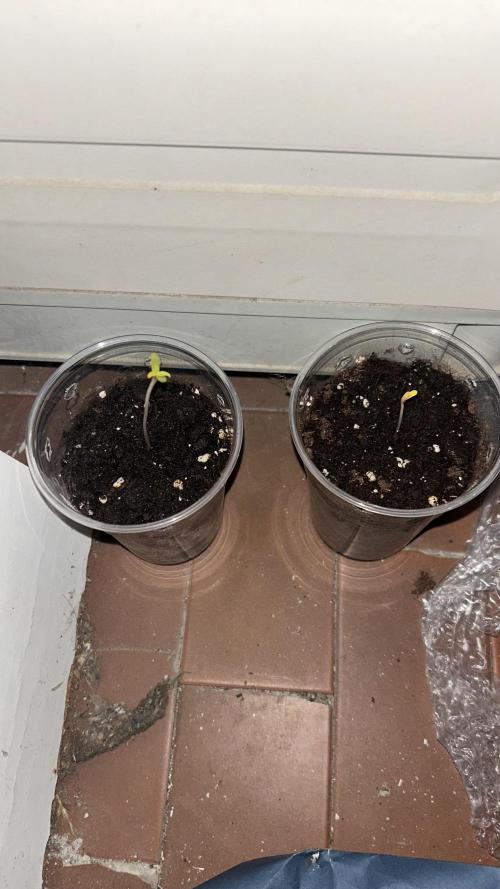 Germinazione riuscita ma uno dei semi è rimasto un po’ indietro.