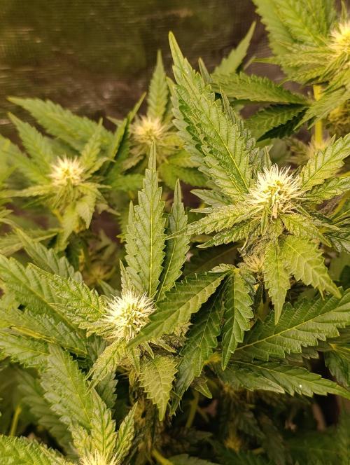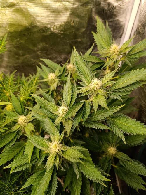 El follaje continúa verde intenso, brillante y saludable, sin señales de estrés ni carencias. La estructura abierta sigue favoreciendo la circulación del aire y la penetración de luz, permitiendo que cada cogollo reciba la atención que necesita para crecer equilibrado y fuerte.