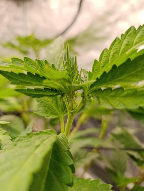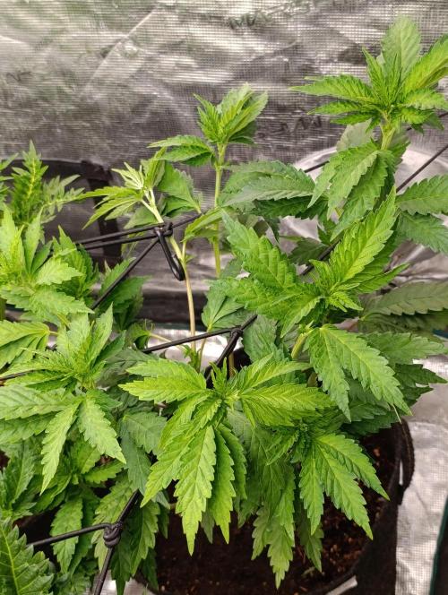 La Sticky Queen de Royal Queen Seeds avanza con solidez en esta segunda semana de floración, mostrando un estirón equilibrado en sus ramas principales y laterales. Los pistilos se muestran abundantes y sanos, anunciando la formación de las primeras coronas florales con fuerza. La genética demuestra estabilidad y buena respuesta a la luz, aprovechando cada rayo para un desarrollo uniforme.