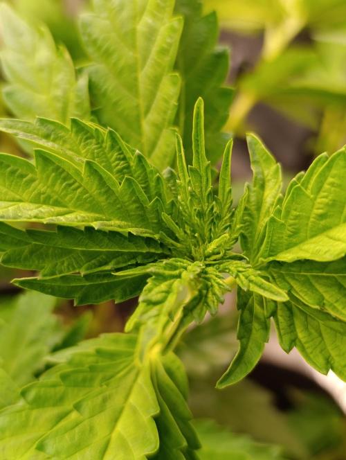 El follaje se mantiene verde intenso, sano y brillante, sin signos de estrés ni carencias. La estructura abierta y bien trabajada permite que el aire circule libremente y que cada punto reciba la dosis de luz necesaria para crecer con vigor. Todo el entorno acompaña el ritmo natural de la planta.