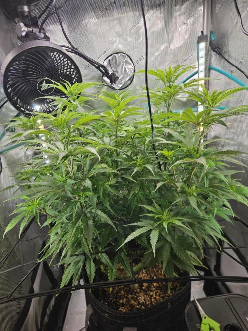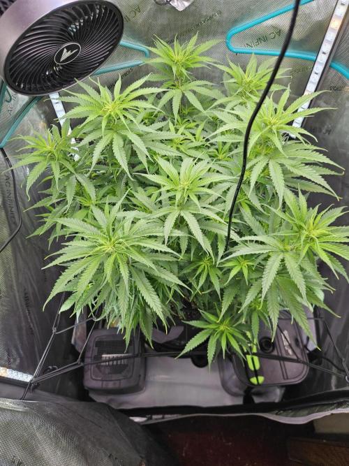 BobbersDown Charging forward full speed. Trellis went on after pics. At about 75% feeding, 3 quarts of water every 2 to 3 days. Feed every other watering. Smells strong for a vegging plant.