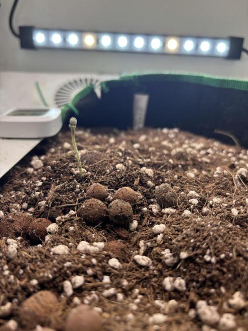 psychonaut420 Thought give a go of Mental rainbow F1 as my first ever fast flowering phenotype and first time growing with sweet seeds genetics and gonna see how she handles the heyAbby420Pro edition grow box still working my skills up to hydro so with a slight adjustment time I got her in some coco and perlite (70:30ratio) substrate and then some clay pebbles for drainage in a 20L fabric pot looking forward to try different forms of training techniques and it’s growth style compared to autoflowers and now the seedling has popped her seed helmet and a baby plant is born