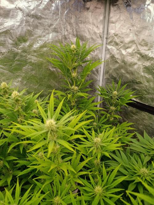 Empiezo el seguimiento en floración por problemas técnicos con la cuenta, pero las A5 Chaze han llegado a esta fase con muy buena salud. Responden muy bien al manejo y muestran una estructura fuerte, con ramas listas para cargar. Tengo muchas ganas de ver cómo se expresan en resina y aromas durante esta etapa.