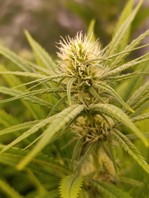 La A5 Chaze de Terpyz entra en su segunda semana de floración mostrando un desarrollo constante aunque algo más contenido que otras genéticas. Los pistilos comienzan a despuntar tímidamente, anticipando las primeras coronas florales. La estructura sigue siendo sólida, con ramas laterales que se estiran poco a poco.