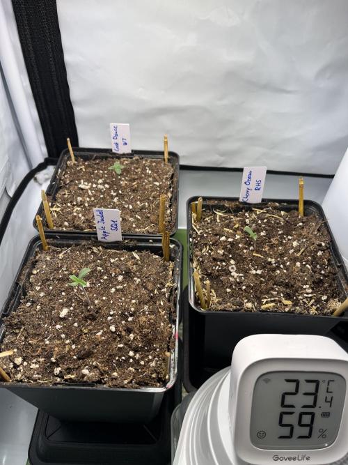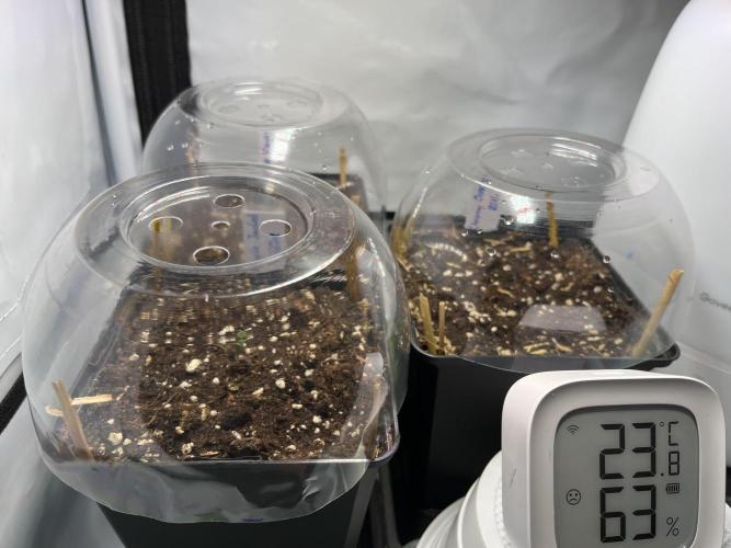 All seedlings successfully sprouted. Will start counting the days on this diary once they have broken through the soil surface. Took another 48 hours after transplant until all of them got visible. Used a humidity dome for the first two days.