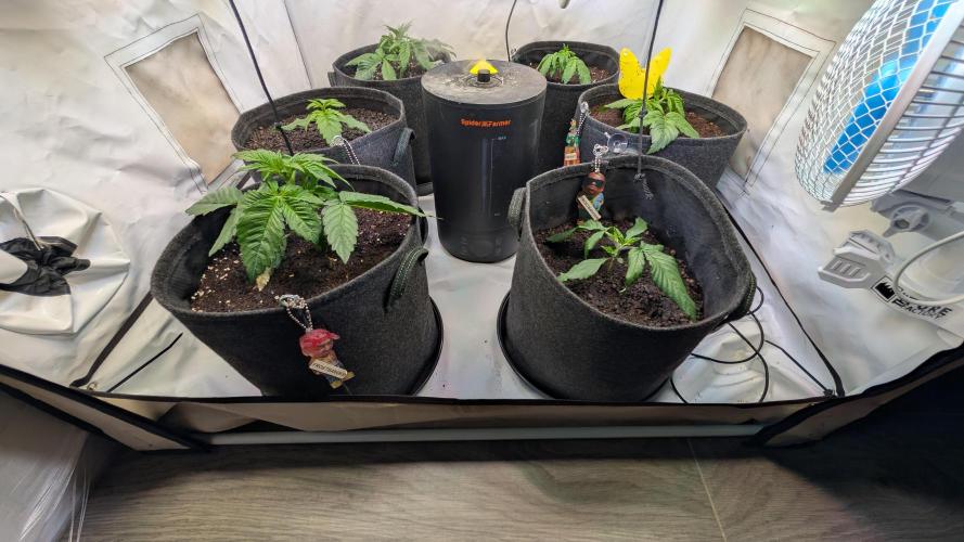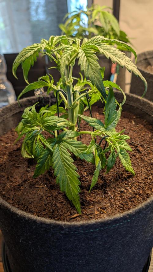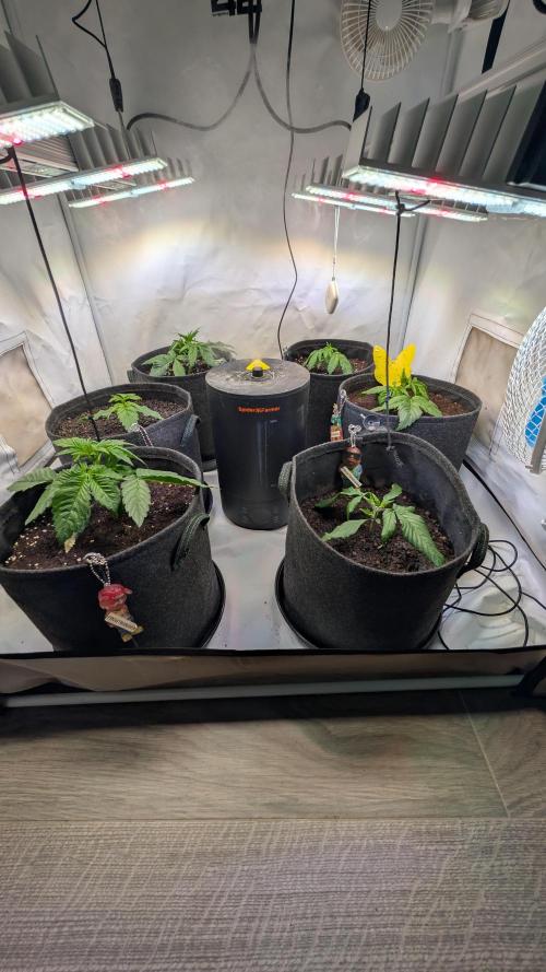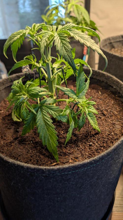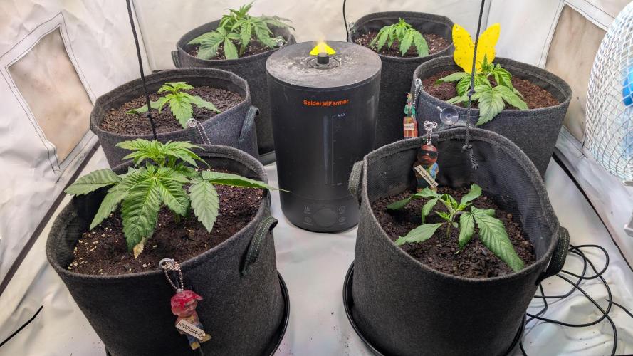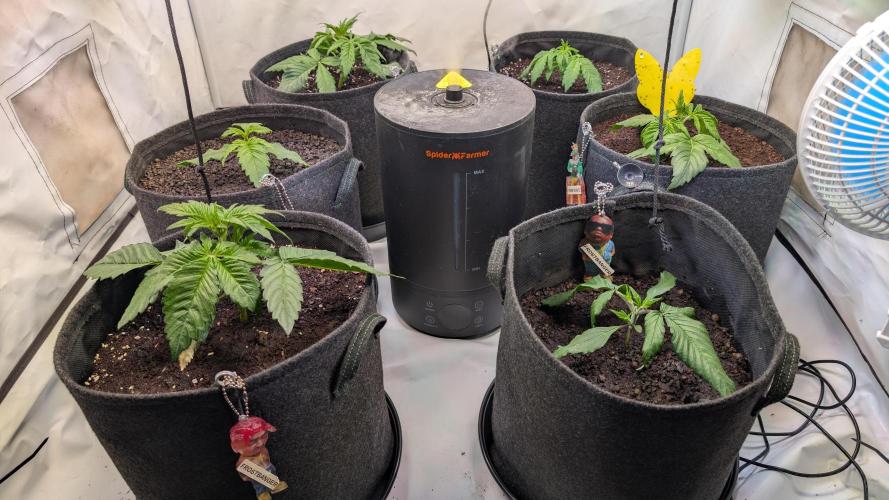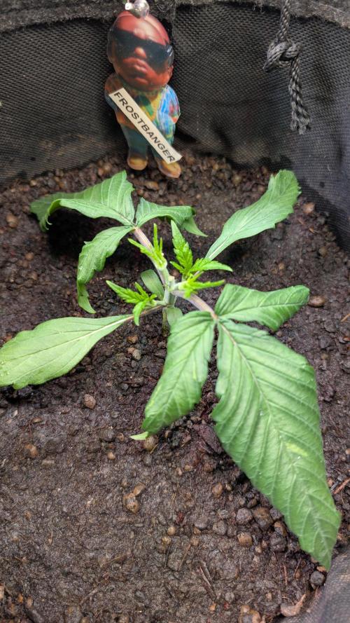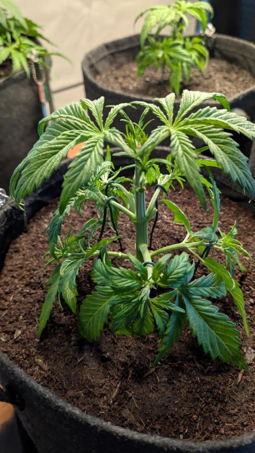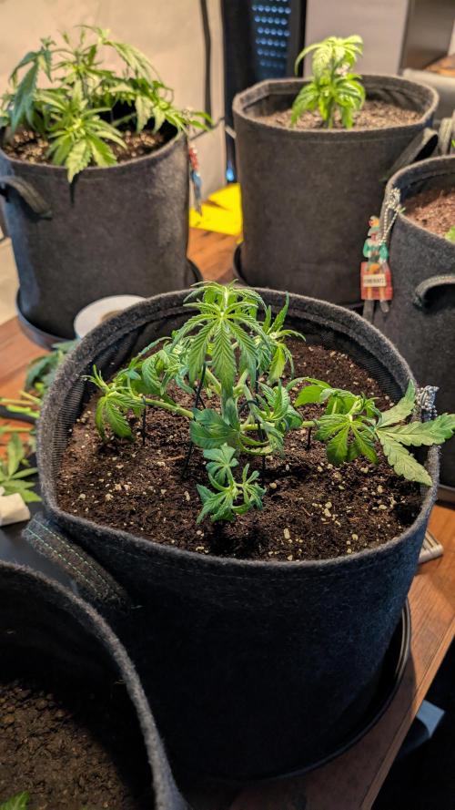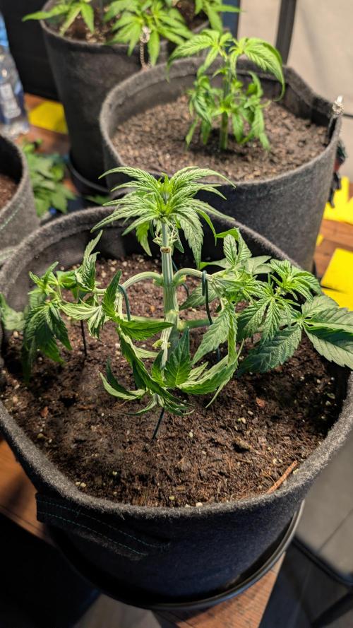 This week we defoliated and topped the remaining ones. Unfortunately, I broke a branch while mainlining the FrostBanger, but hopefully I can mend it and it will grow back together. Flowering will begin in the next few days, and we're excited to see how they develop.