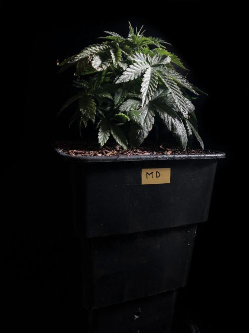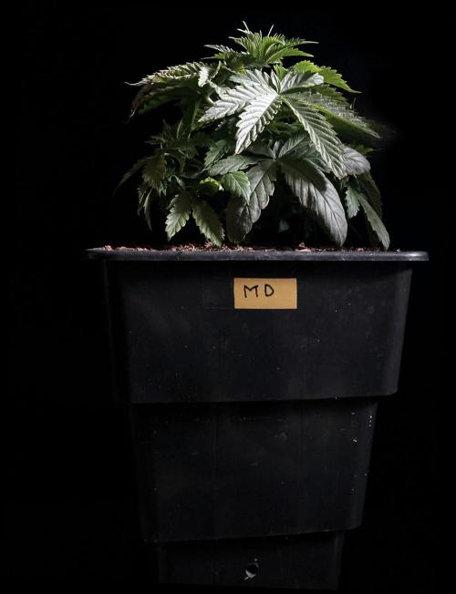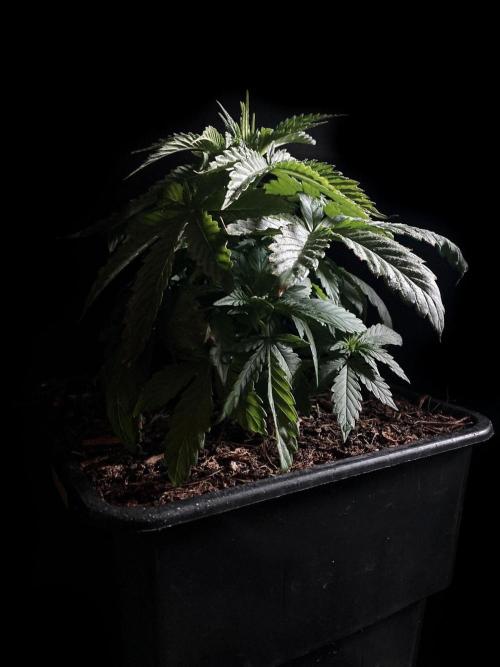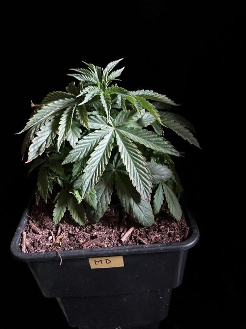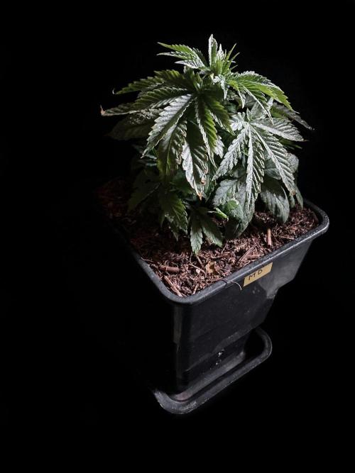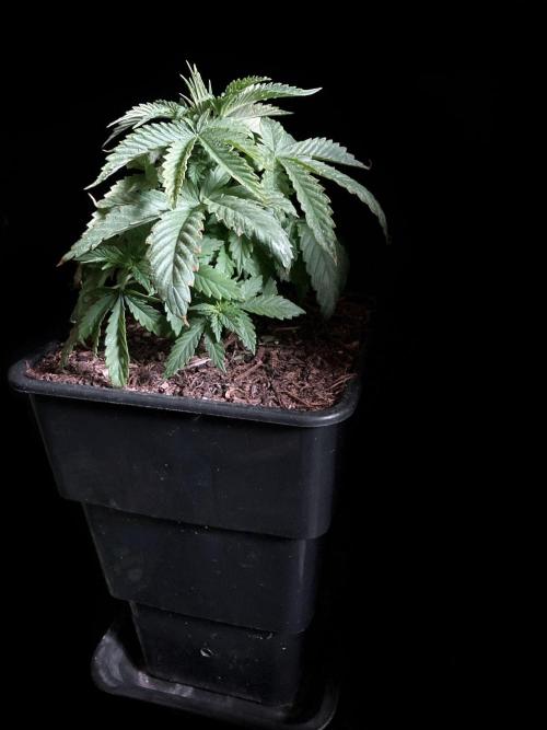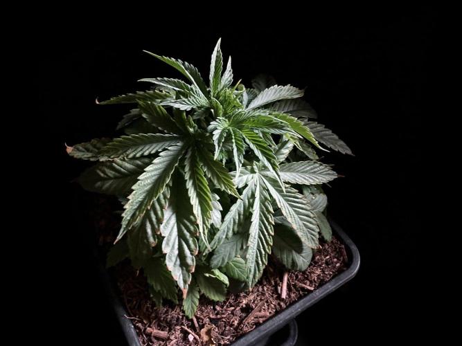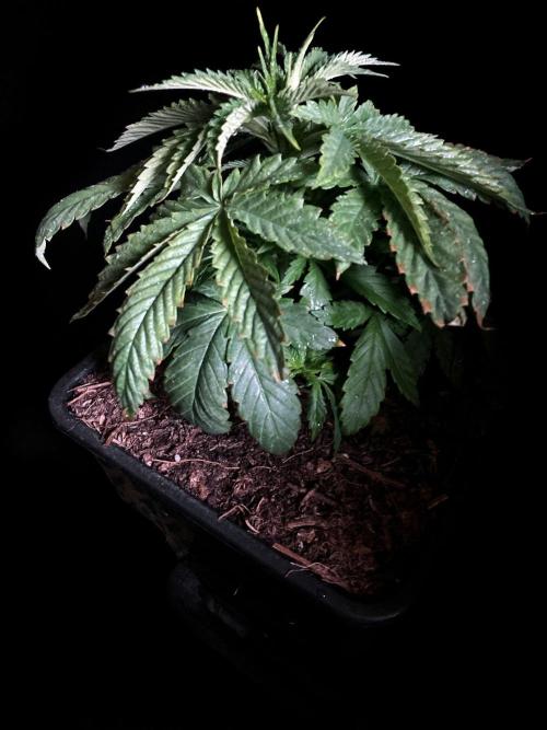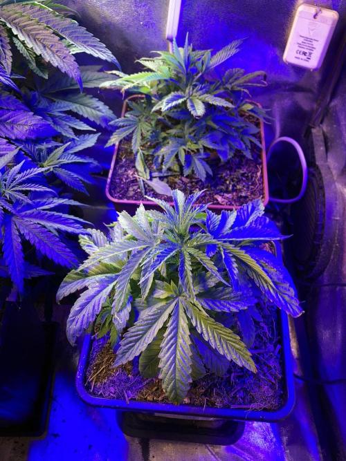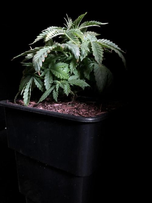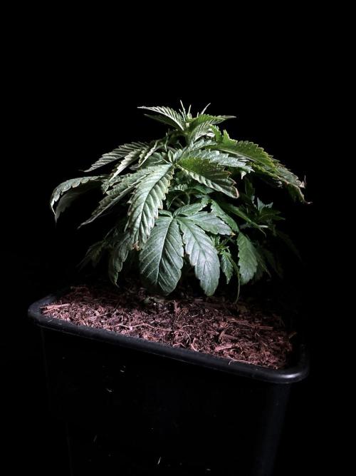 De momento mantengo la planta con 21 horas de luces blancas y azules para promover la compactación y la ramificación.