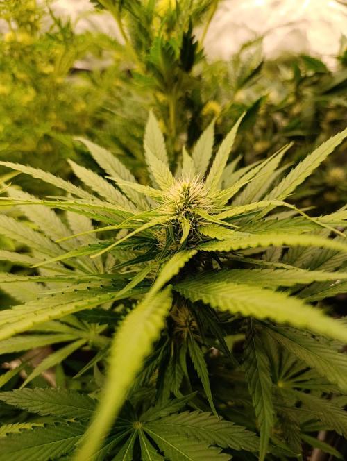 El follaje mantiene un verde intenso y saludable, y las ramas laterales se fortalecen, listas para sostener los cogollos densos que continúan formándose. La nutrición equilibrada, junto con el aporte de calcio y magnesio, asegura hojas sanas y sin estrés.