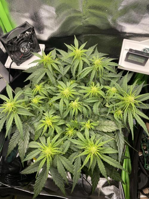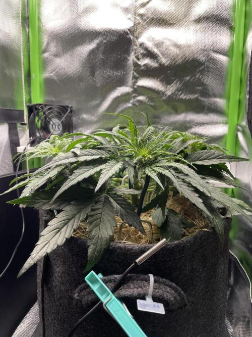 I fed only half the recommended PK dose because the leaves are already a deep green. The tap is hitting.