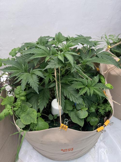 Terp_Djiny Seile spannen und etwas beschneiden stand diese Woche zweimal für die Pflanze auf dem Plan. Gegossen wurde nur mit Wasser um die Erdfeuchte bei 70-80mbar zu halten. Das Cover Crop wächst auch fröhlich vor sich hin.