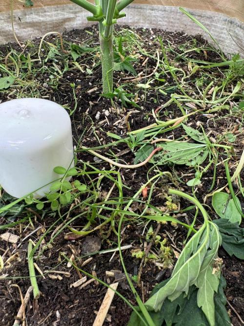 Im Anschluss habe ich das covercrop bodennah abgeschnitten und einige Zusätze in die obere Erdschicht eingearbeitet. Nach dem einarbeiten habe ich das abgeschnittene covercrop wieder als Mulchschicht aufgelegt.