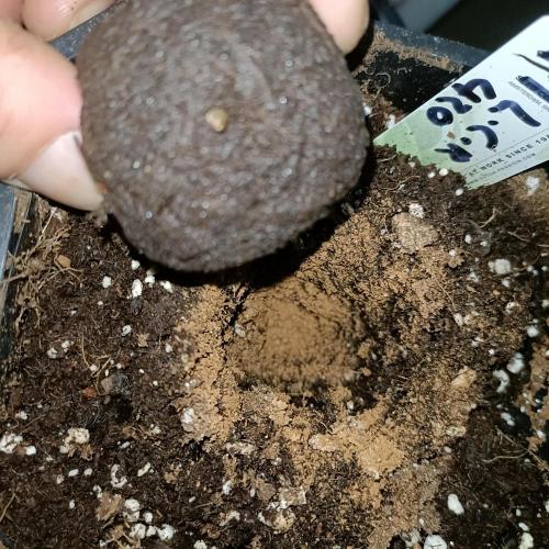 With my finger made a hole in the centre big enough for the root riot plug, (once the seed is germinated) Sprinkled in Dynamyco for plug hole.