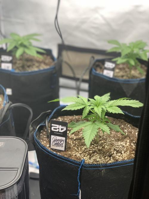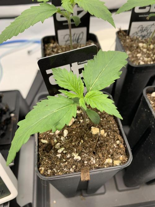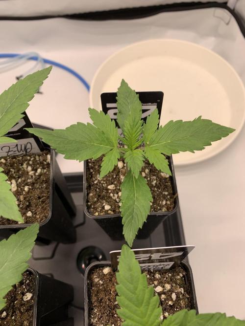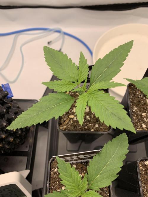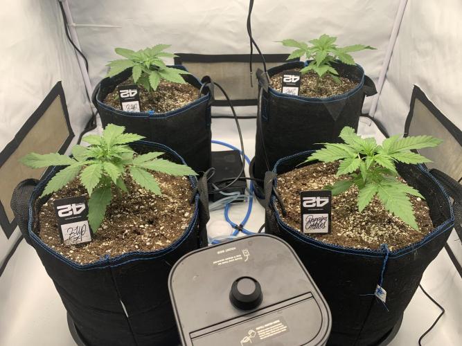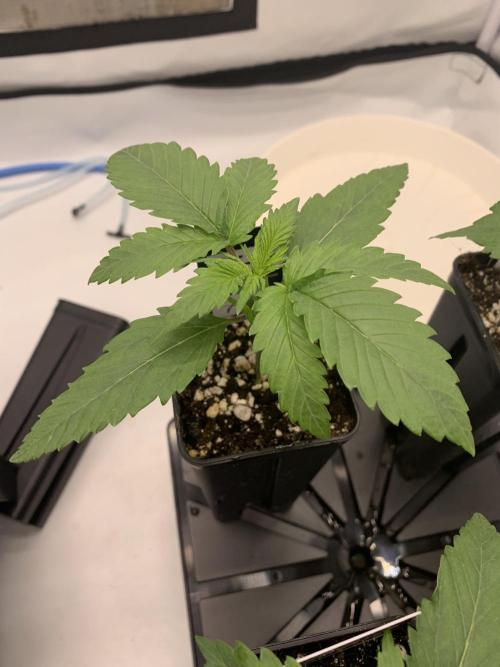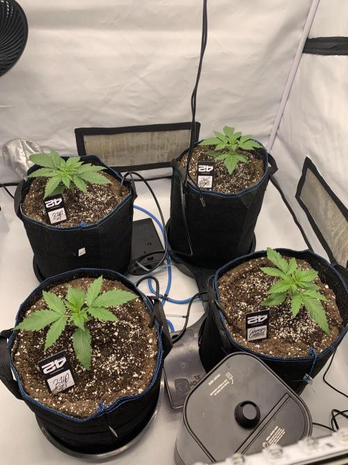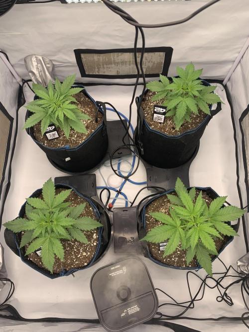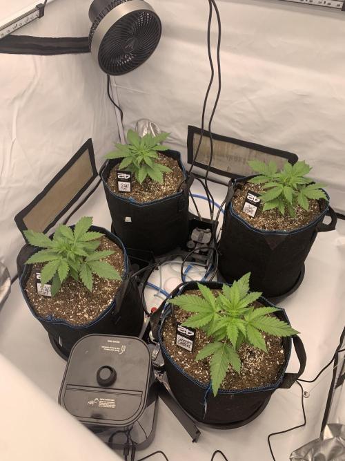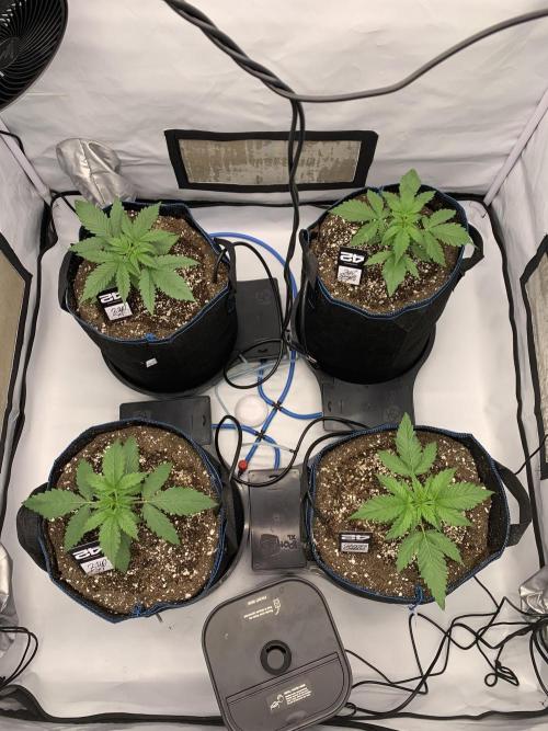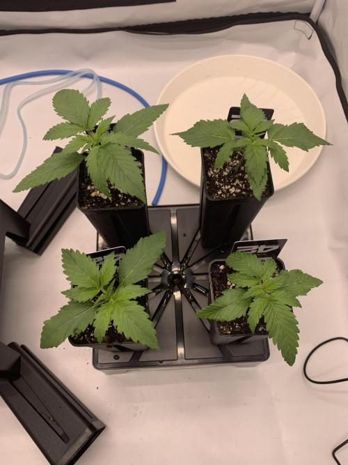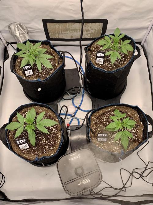 Sie zeigen alle unten am Anzucht Topf die ersten Wurzeln und können hoffentlich schon zum nächsten Gießen in die 20l Töpfe vom autopot System umgetopft werden.