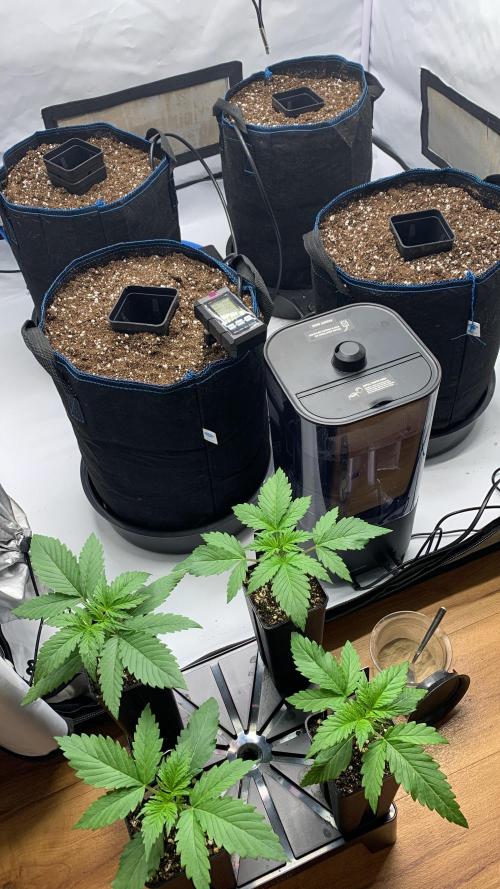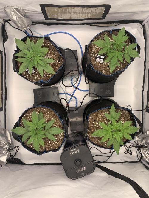 10/15-10:20 p.m. - Repotted. They're now in 20-liter Autopot flexi pots. I used a good amount of mycorrhiza for repotting and 1.5 liters for watering with Nematodes. I'll fill the tank in the next few days and probably turn it on then. They should be rooting downwards and then finding water/nutrient solution at the end. Hopefully, from then on, things will run smoothly. :)