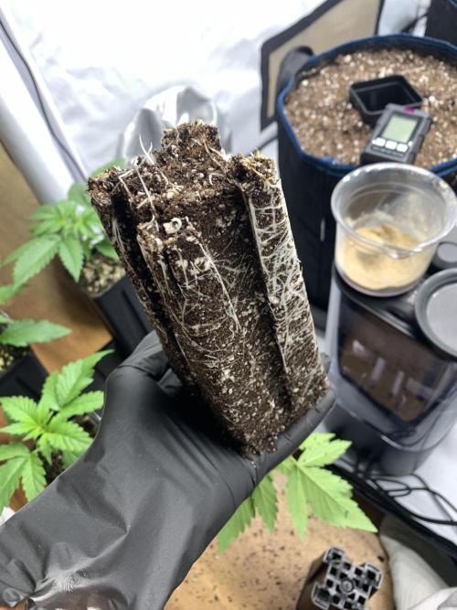 15.10./22:20 - umgetopft. Sie stehen nun in 20l autopot flexi töpfen. Zum umtopfen gab es ordentlich Mykorrhiza und 1,5l zum angießen mit Nematoden. Die Tage den Tank voll machen und vermutlich auch dann einschalten sie müssten eig so jetzt nach unten durchwurzeln und dann am Ende dort auf Wasser/Nährlösung stoßen. Ab da läuft es dann hoffentlich wie von selbst. :)