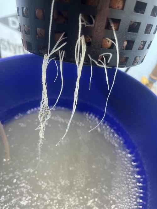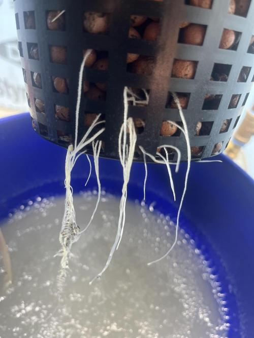 Kizzez She is doing very well. She seems to be going fast. I was worried she would stunt out because of the weird taproot and only 1 codylton. That has not stopped her. Her roots hit water between day 4 and day 5. That is fast but within the range I look for with plants, fast germination, fast growing roots. That makes all the difference (hitting water early). I’m not sure how big she will get but she’s going to get as big as the plant can. She’s supposed to be small/medium sized so I’m hoping for a large plant that won’t out grow my space. She has not had her solution changed yet. So she is on the same nutrients. Thanks for reading!