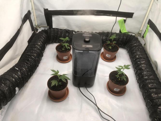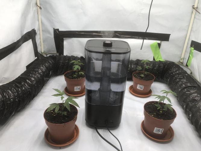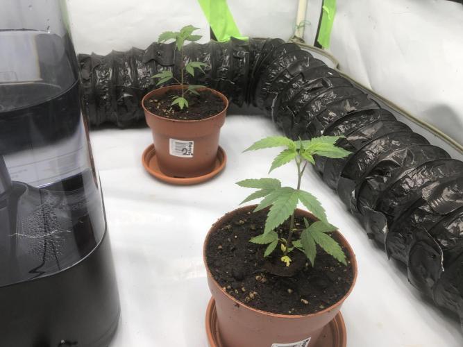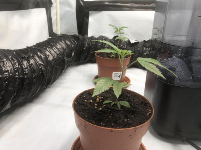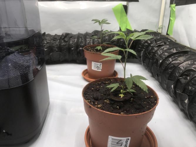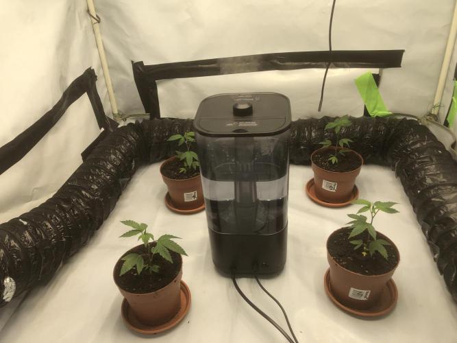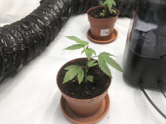 foxbberg clones just arrived. Potted into 1 liter pots and got some bio-complex, containing kelp, humic acids and mykos + Silicate. Light ascending through the week from 200-500 ppfd max. 100% for 9hrs. Then dimmed to about 60-70%.