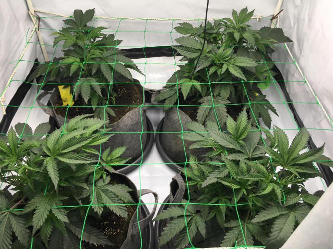 Due to high EC levels in the soil, i couldn't do much more than pour out some water and prepare the scrog this week.