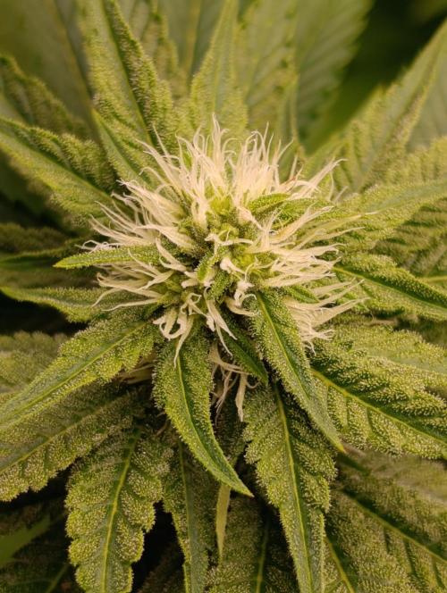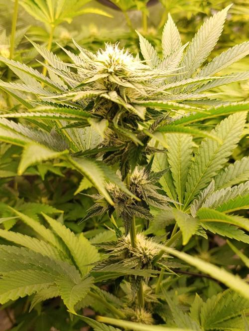 La Lemon Cherry Runtz de 42 Fast Buds entra de lleno en floración mostrando un ritmo explosivo. Los cogollos comienzan a tomar forma en cada nudo, con pistilos abundantes y un aroma dulce que empieza a despertar.