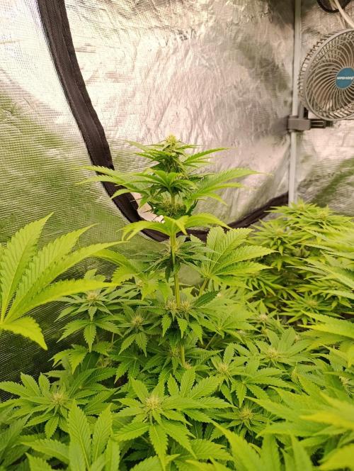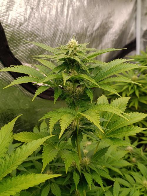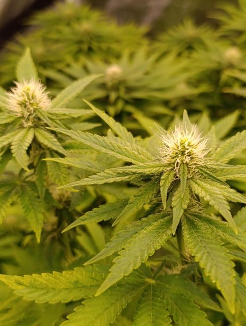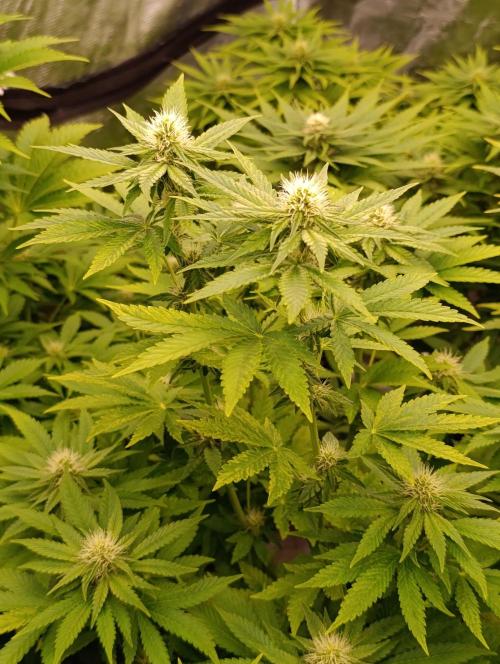420DeepGrow Arranco el diario de la Mental Rainbow directamente en floración, ya que por problemas con la web no pude comenzar antes. Las plantas están muy sanas, con buena estructura y ramas fuertes, respondiendo perfectamente a los nutrientes de XpertNutrients, que mantienen un crecimiento equilibrado y hojas verdes y sanas. Estoy trabajando con la Mars Hydro FC6500 como luz principal, complementada con los Adlite, logrando una cobertura uniforme que permite que los cogollos se desarrollen hasta las zonas más bajas. Por ahora, la Mental Rainbow muestra un inicio de floración prometedor: cogollos densos y resinosos, con un perfil aromático frutal y fresco que recuerda a cítricos mezclados con notas dulces. Parece que la planta va a desarrollar colores vivos, desde verdes intensos hasta matices rojizos y morados hacia la recta final. Seguimos creciendo fuerte 💪!