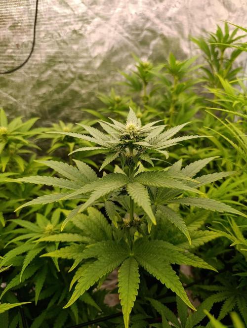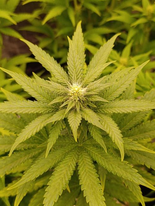 La Biscotti Gelato empieza a mostrar claramente su cambio de etapa: los pistilos se multiplican y los primeros cogollos empiezan a tomar forma en cada nudo. El estirón de prefloración se hace evidente, con ramas que buscan altura y se preparan para cargar peso.
