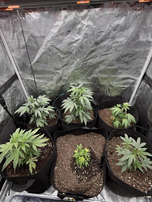 Nony_grows Clones are growing well I’m going to start to train them soon. They are showing signs of an early cal mag and n deficiency, I will correct it and update in the next week. I caught it early it should affect anything