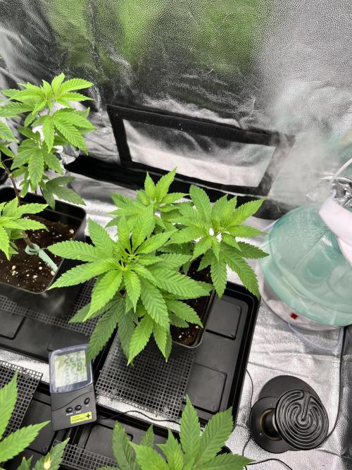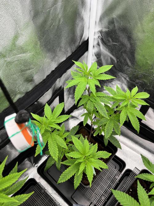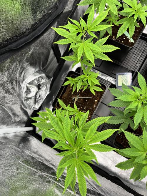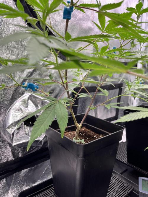 Jardin33ro Estos clones me llegaron en vaso, tuve que trasplantarlos a maceta de 3L con sustrato complete. El primer riego el martes fue con Mycorrizas tambien para promover el desarrollo radicular y fortalecer el sistema completo de la planta. Ultimo dia de la semana le meti unos clips lst para comenzar a entrenarla. La idea es que sea un vegetativo corto.
