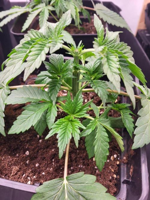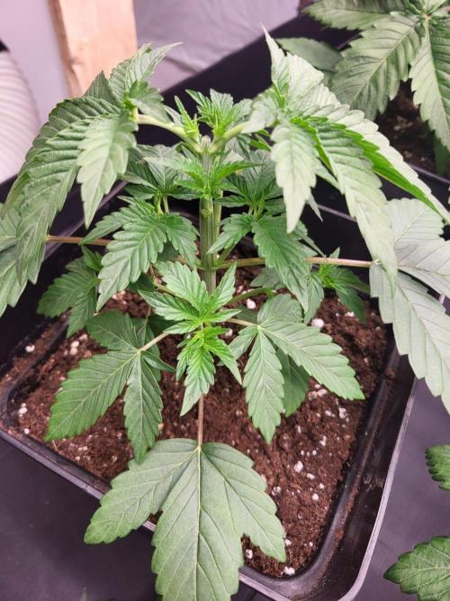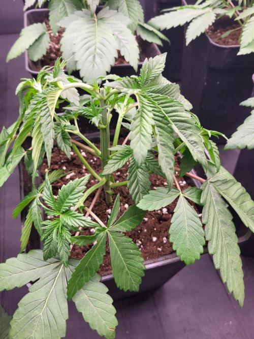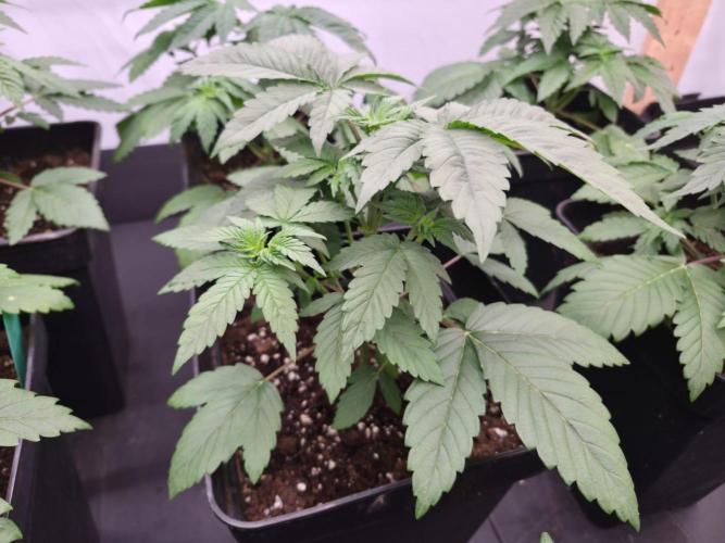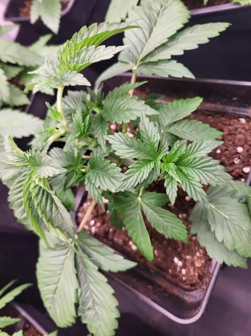 Breaking-Bud En la foto del día 7, se observan algunas hojas arrugadas, posiblemente por exceso de agua en sustrato, ya que el light mix de biobizz no drena tan bien el agua, al no haber gran sistema radicular para absorber el agua.