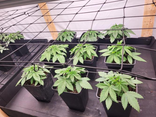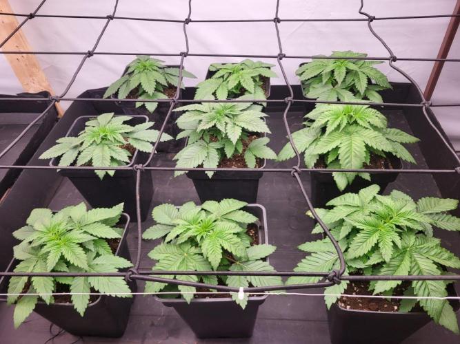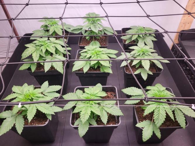 👽Hicimos poda apical el tercer y cuarto dia de la tercera semana, la hicimos en 2 fases, debido a la diferencia de altura y nudos de cada planta, después de la poda apical, hicimos riego de Cal-Mag, Vodoo Juice y Alg-a-Mic de Biobizz, el unico producto fuera de la gamma de Advance Nutrients, ya que lo hemos utilizado en anteriores cosechas y sus resultados son espectaculares.