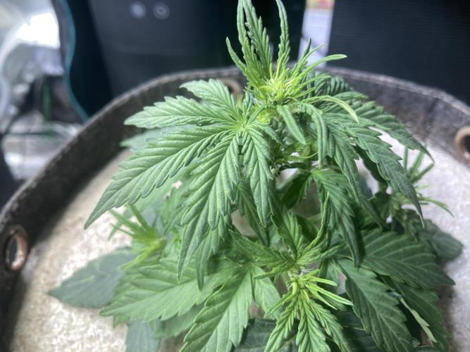 Tag 21 zum Abschluss der Woche gibst die Nebentriebe, Ein voll entfaltetes Fünf Blatt und der Haupttrieb macht ebenfalls weiter. Nach anfänglichen Zimperlichkeiten mit dem Licht kommt das Ganze nun in Fahrt.