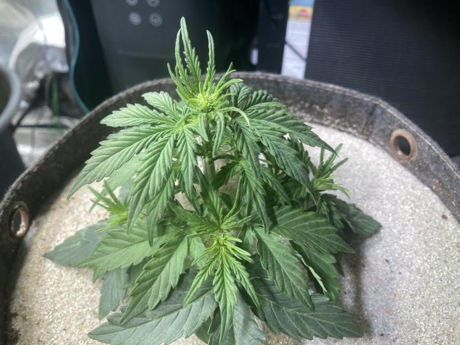 Die Pflanze hat 6 Nodien auf knapp 10 cm Größe gemacht, damit bin ich zufrieden, aber nach drei Wochen in die Vorblüte weiß nicht