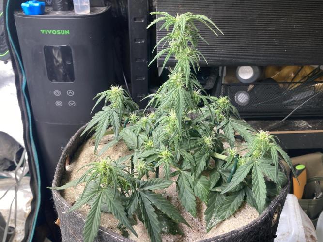 Viele starke Triebe, Pflanze bleibt recht gedrungen, man merkt auch im Zelt das es Winter wird, Klimaanlage nun 80% der Zeit im Entfeuchtungsmodus am chillen.