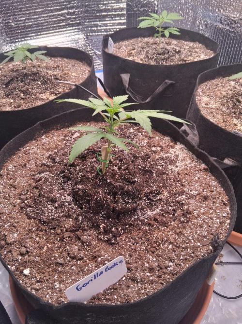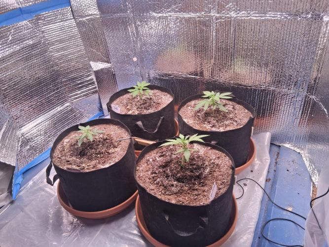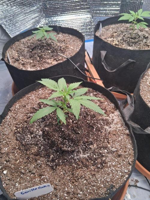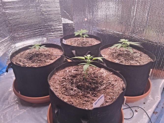 DoobieDoobieDan Gorilla Cookies is definitely doing the best, sour jealousy is a little sluggish in comparison. All doing really good so far. Green Crack in the tent is flowering, it should finish right before these outgrow the 200 watt light so I can transfer them to the tent.