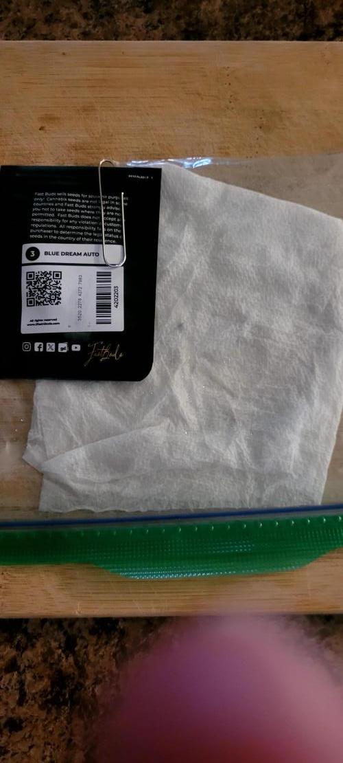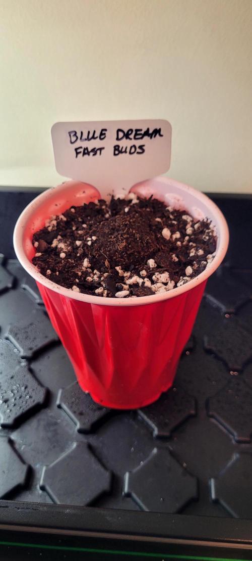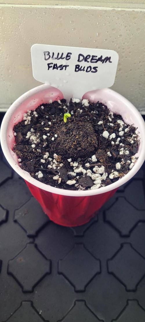 VirginiaGrower Blue Dream Auto by Fast Buds was started with the paper towel method, and after her tap root appeared, she made a new home in a Rapid Rooter, Fox Farm Happy Frog with perlite and Myco Bliss. She finally shed her shell to peep out on October 3rd. So far, she seems happy.😀