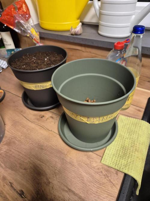 25.09. ca 20 Stunden später in Erde eingesetzt. Mit einigen Teelöffeln destilliertem Wasser "angegossen" und Glas über die Stellen.