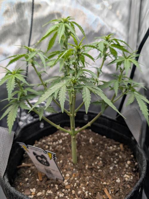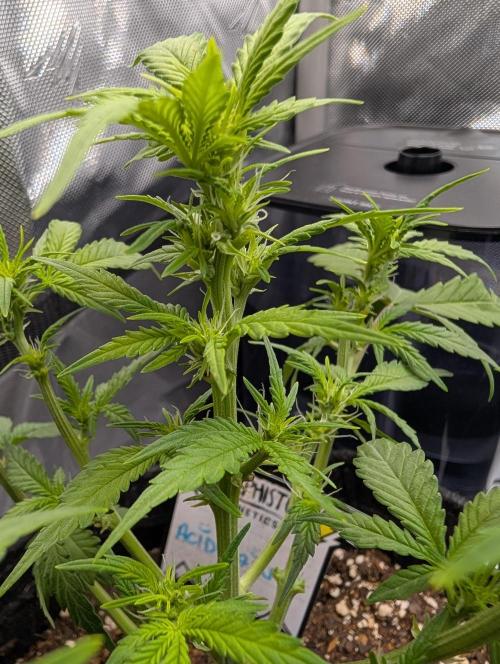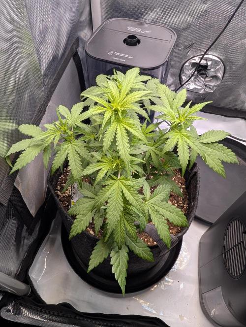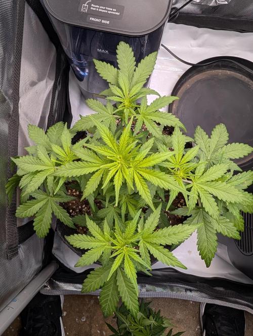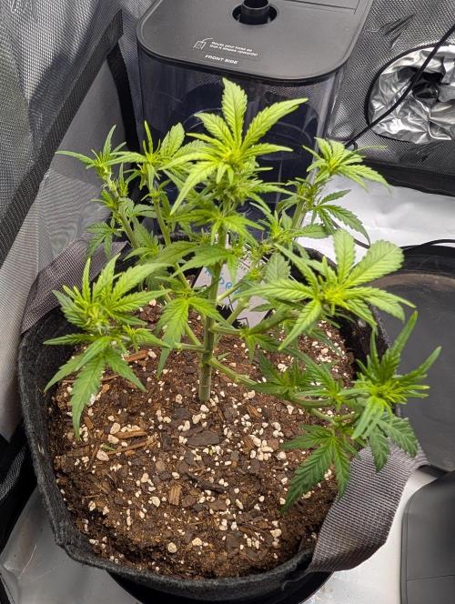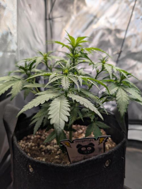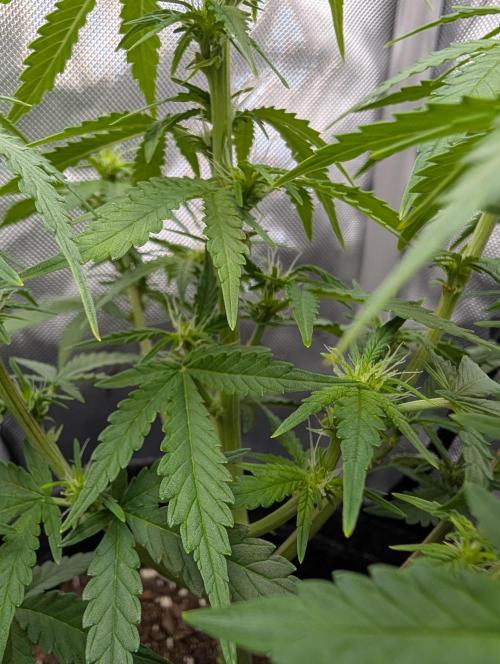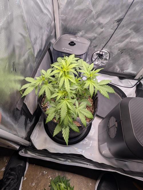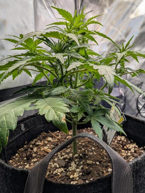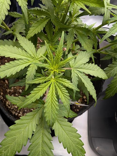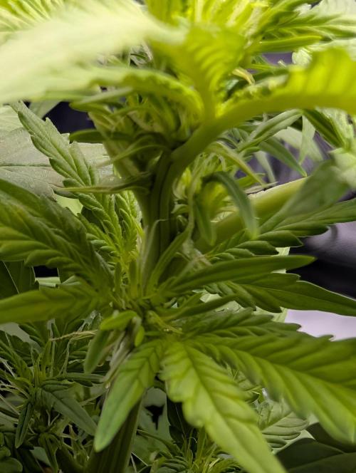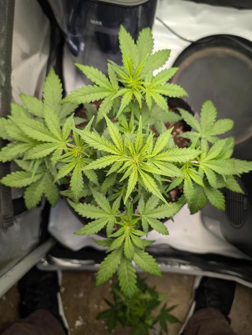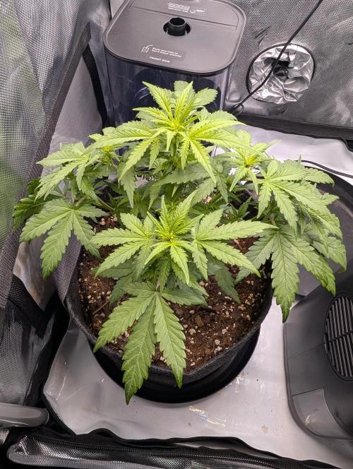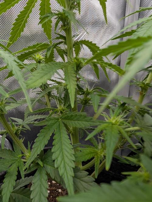 Mums_The_Word Today is the end of week 5 and it is starting to show some flower pistols, not as many as the Black Herer, but it's got a few pistols. So this upcoming week will be my last defoliation and changing the environment into flower inside the tent, wasn't fed any nutrients this week only pH'd water