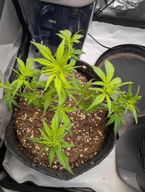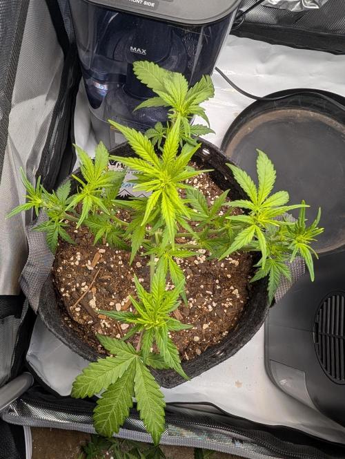 Mums_The_Word It's been a slow start to say the least, I'm a little concerned seeing as this strain only takes 42 to 56 days from start to finish, so I'm hoping for some some rapid improvement in the next coming week. I may move my light closer. I'm really not sure what's going on here. Trying to be patient. I know it's only week two but I see other people's plants in week two and they put this to shame so I don't know. I'll give it a little more time