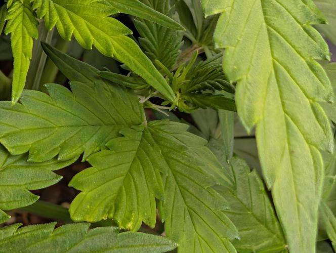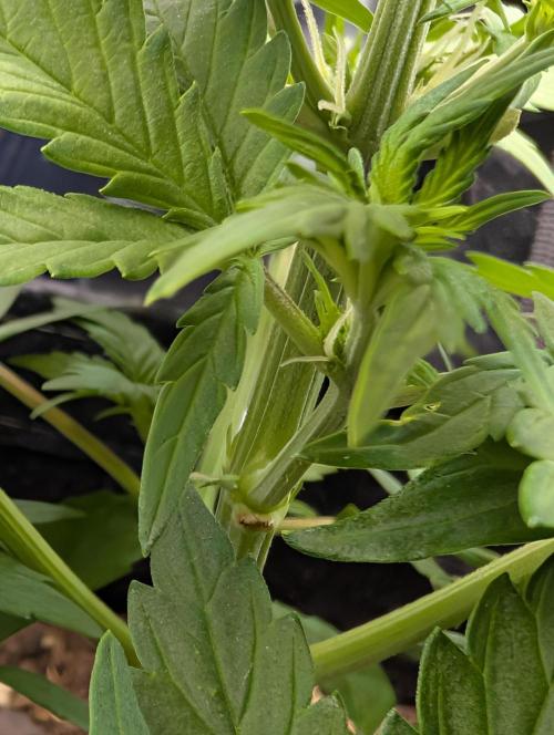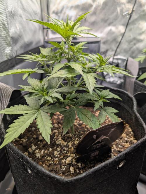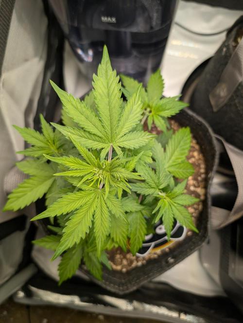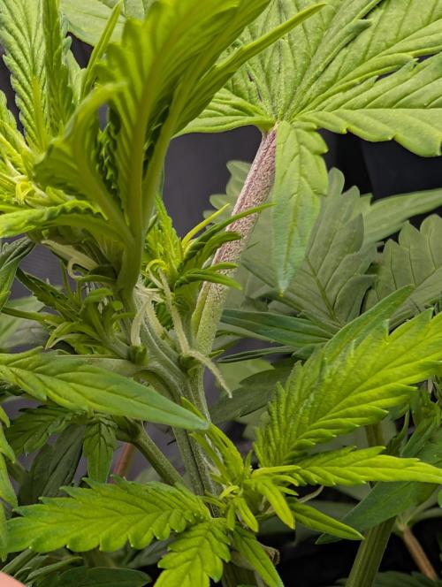 Mums_The_Word This week no nutrients were given only watered with pH'd water did a little bit of defoliation but by the time I took the pictures New growth had already developed. Will probably defoliate a little next week, also finally starting to flower so I will defoliate one more time since I'm in very early stage of flower added a dehumidifier to the grow tent so I can lower humidity once it starts to get deeper in the flower stage