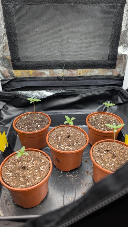 Leider musste mein Zelt kurzfristig umziehen. Deshalb standen die Pflanzen vorübergehend in einem kleineren Zelt – mit einer deutlich schwächeren Lampe. Ich muss ehrlich sagen: Ich habe in der Zeit nicht wirklich auf den Lampenabstand geachtet, alles lief eher nach Augenmaß.
