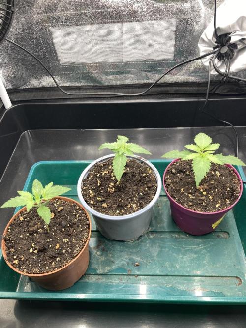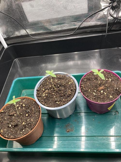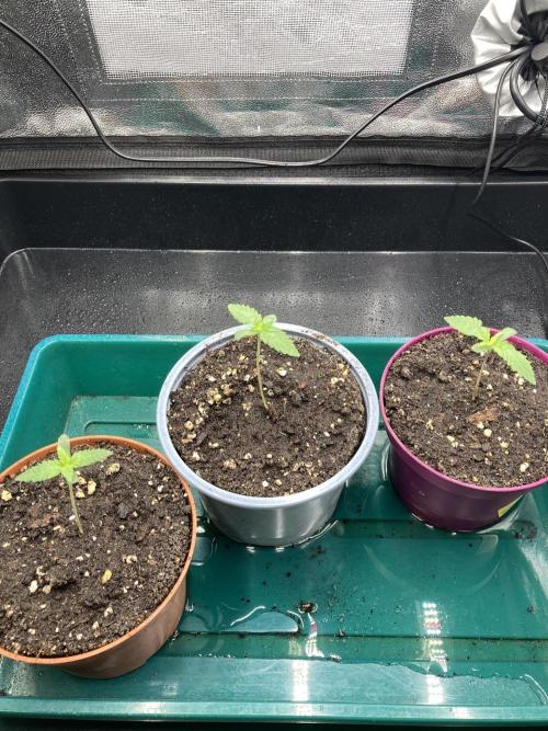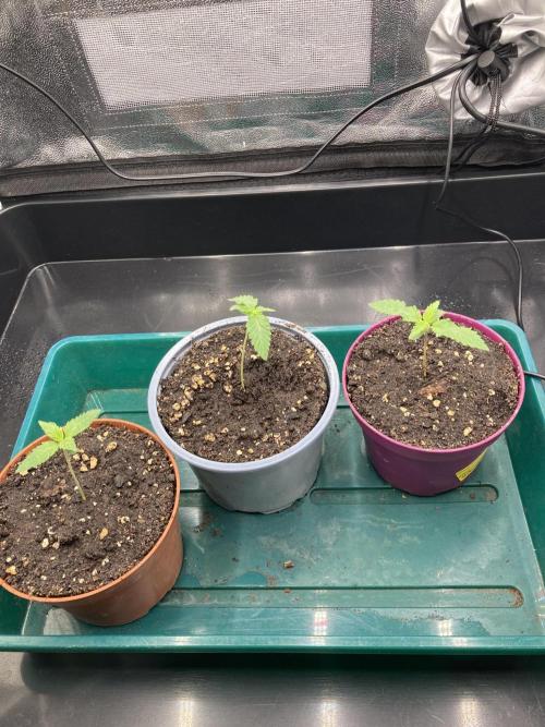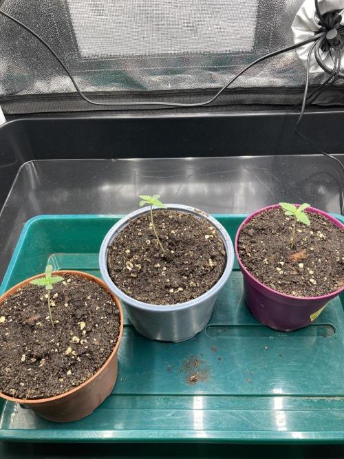 laxx Welcome, welcome back to the wonderful grow season of 2025/2026! As the weather gets colder and summer is leaving, the indoor growers crawl back into their tents and start germinating their freshly bought seeds. This is the time where this story sets to begin too. For this I announce thee: Triangle Project! Triangle Project is a grow where I want to get 2 Purple Punch from Barney's Farm into a triangular shape and fill the tent in an attempt to use my knowledge from last grow and apply it to double the amount of plants in order to now finally fill out the tent - with more plants in the same amount of time, this time really. I am also trying out some new methods of watering. As you can see I have installed a plant tray with which I intend to bottom water the plants when they are big enough. I hope to get a bigger root system this way. And as we all know: bigger roots equal bigger plants equal bigger buds. So let's do some quick planning: 1. Germinate 3 seeds. 2. Select 2 plants. 3. Shape them in a triangular shape and fill out the whole tent. 4. Flip them, flower them out (hopefully get some purples), harvest them. 5. Get better at growing. If everything is coming together by the end of this grow we will also hit the optional extra target of 1g/W resulting in 150g dry with these 2 plants. Some quick protocolling for completion: - Seeds planted in pots in the evening of 22.09.25 - First and Second showing up on 25.09.25 - missed a picture on D3 due to absence, but this is probably the day the Third showed up - they are now all roughly the same size and growing vigorously Let's see how everything turns out. I'm glad to be back. Happy growing everyone :)