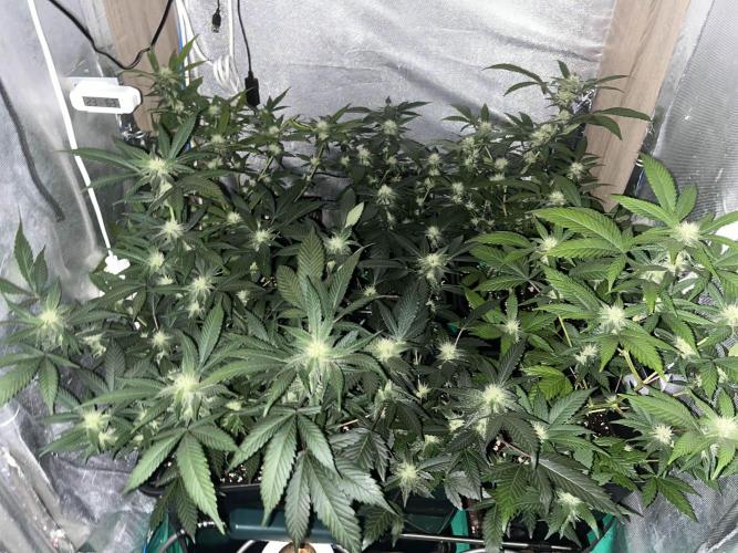 Raster893 Finalizamos su 4 semana de Floracion, esta semana hemos empezado con solo aguita, para evitar un sobrefertilizacion y contento con la cantidad de resina que esta fabricando la planta y el trabajo del foco que esta dando el callo a pesar de su potencia :)