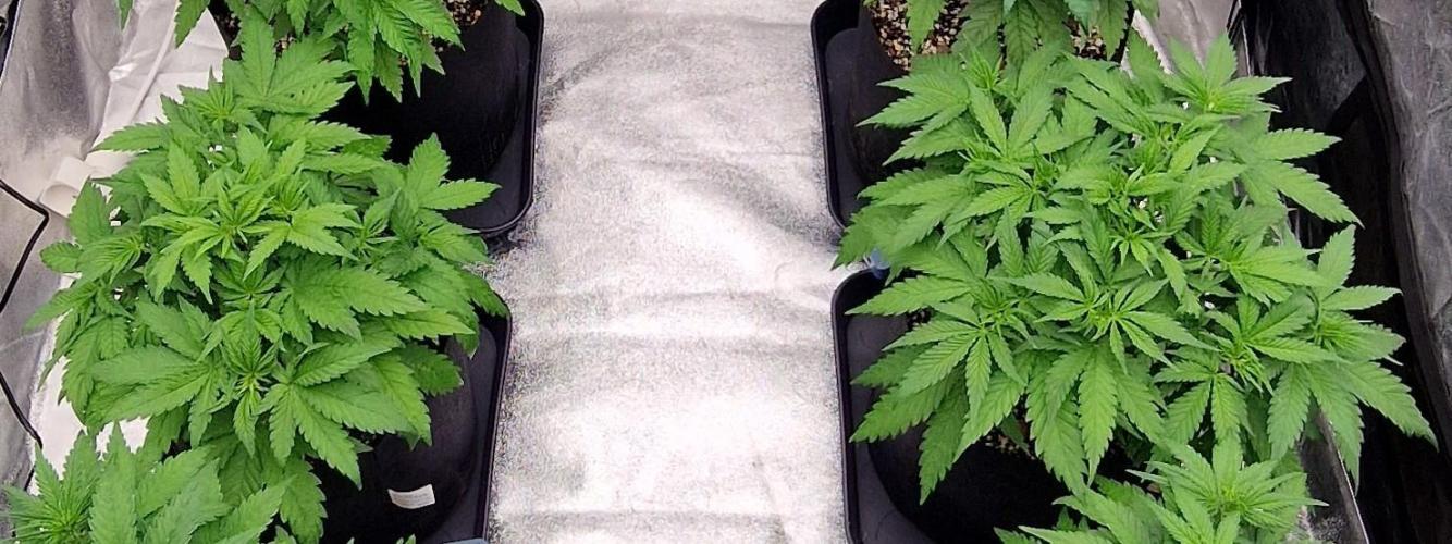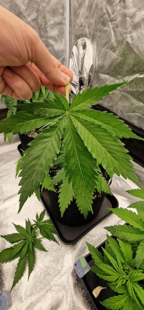 The girls are pushing along nicely this week — strong growth and healthy structure all around. One of the phenos is showing a bit more purple in the stems, likely those anthocyanins starting to express early, which is always exciting to see. 🍇