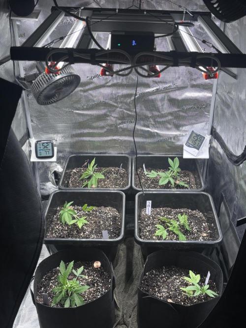Robertgrowsit86 There is some yellowing on a couple plants on the leaves right above the base of the plant. I broke a branch in lady 1 , Alil yellowing on the a couple plants from the soil being Alil to hot. But the rest of them are perfect . Only issue with 2 of them and it’s my fault. These ladies have been rocking strong. Update soon. Peace out