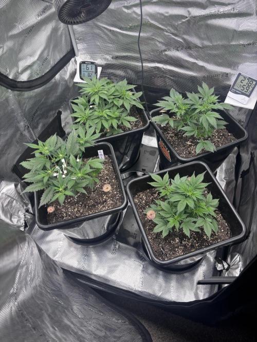 The clips on to long which was only a couple days a week max. But it snapped that stuff off right at tht top. They are growing ok. I mean great for all they been through . I was hoping for a grow cycle with minimal issues and seems like every time I focus on trying to make things go exactly as I planned. I guess I over love my plants this time it seems lmao, but I love to grow so as long as they don’t check out early. I will grow them all the way to the end for my journal & the grow knowledge as well. I have high hopes for these. I mean maybe I was to rough :( maybe I left the clips on to long. But it did slow them down. A bit. But they are going will post more updates in few days. Hope all is well with everyone, god bless & peace out growmies. These cultivars usually run about 10 weeks according to the breeder. That’s at optimal everything. I’m sure these will run about 11 to 12 , but that’s cause of my little breaks, they are basically ropes but not by intention this time around. One of the time twice. So we shall see how they go. But so far the growth has been great, nice hardy plants for sure. I did see some mutation in the leaves but again not sure if this was a me thing, or if it is another reason. I’m pretty transparent, I’m on here to gain knowledge and experience as well connection for new friendships possibly. But I will always be 1000 percent honest. I do struggle with showing my errors Alil bit. That’s the only thing I hesitate about showing, but that’s the only way to grow in my opinion. Gotta get your hands on it and mess it up so it burns it in my brain lol. I’m sure these will be just fine even with these little mishaps!. I need to get a Heater so I can control my day and night temp swings better. Right now I’m doing a 10 degree drop from the time they get into their final homes , through entire grow cycle. So that being said I could be slowing their metabolism to slow, and it Could be giving me diminishing returns. But things my second grow with this mini setup. By the third or fourth I will have all the kinks worked out and solutions in place to fix said issue. Casue the always find ways to improve or adjust everything. Usually happens when I’m cleaning & chiefing lmao. I’m stoned & rambling yall have a good day. Peace out