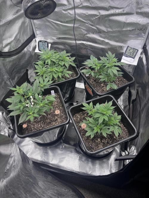 Robertgrowsit86 There is some yellowing on a couple plants on the leaves right above the base of the plant. I broke a branch in lady 1 , Alil yellowing on the a couple plants from the soil being Alil to hot. But the rest of them are perfect . Only issue with 2 of them and it’s my fault. These ladies have been rocking strong. Update soon. Peace out