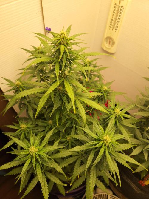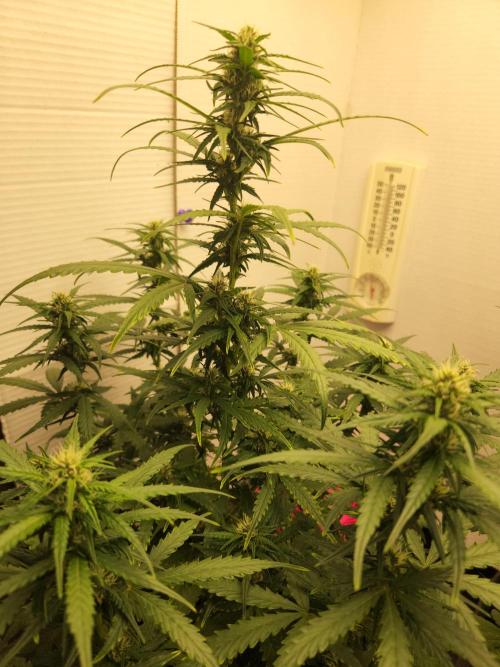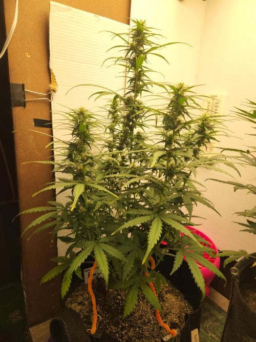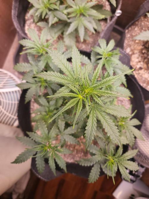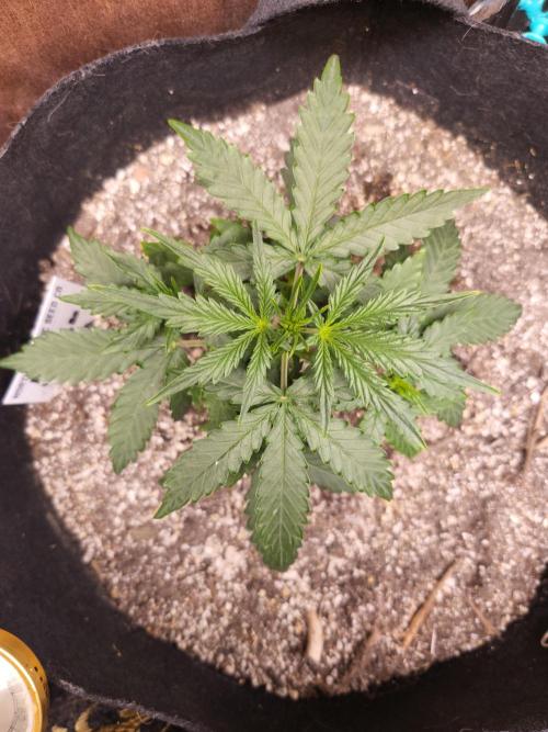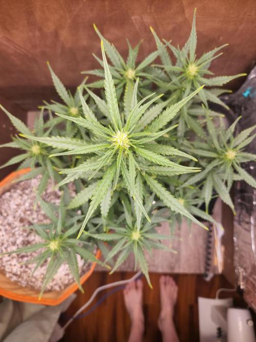 SouthWestHesh Light defoliation of a few major fan leaves that were blocking light from the canopy. This plant has 10 branches creating an even canopy surrounding the central kola. I'm very impressed by this plant from a breeder I am trying for the 1st time!