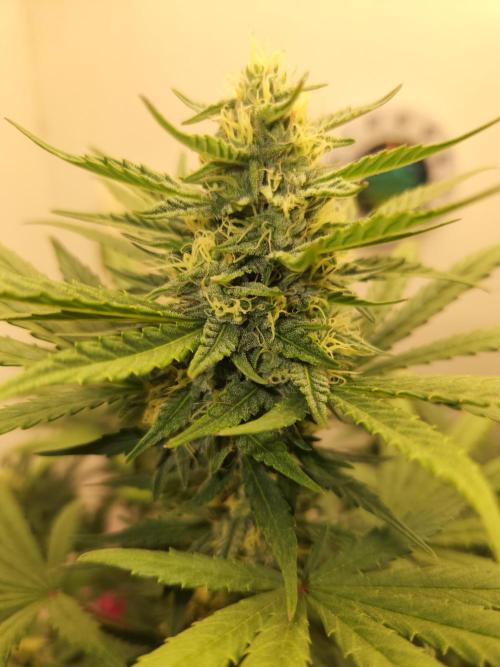 SouthWestHesh Very light defoliation of a very few very large fan leaves that were blocking light from reaching the lower canopy. This plant is a week younger than my other two autoflowers I am currently growing, but is is a much fuller plant. I made light use of LST, but mostly leaf tucking. This plant has 8 branches creating an even lower canopy with two more branches developing bringing the total to 10 satellites surrounding a main kola.