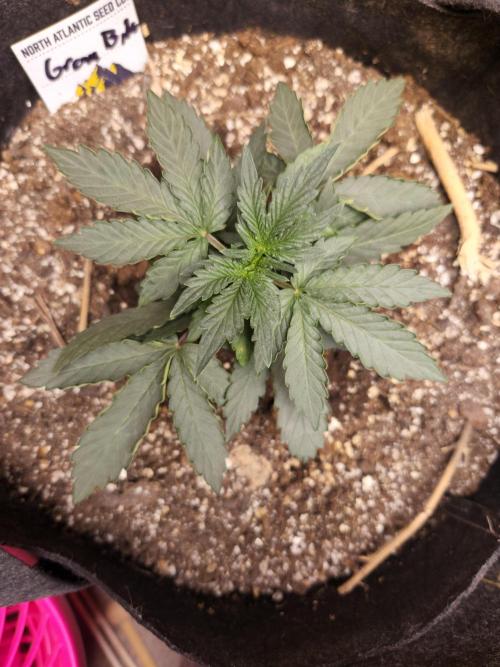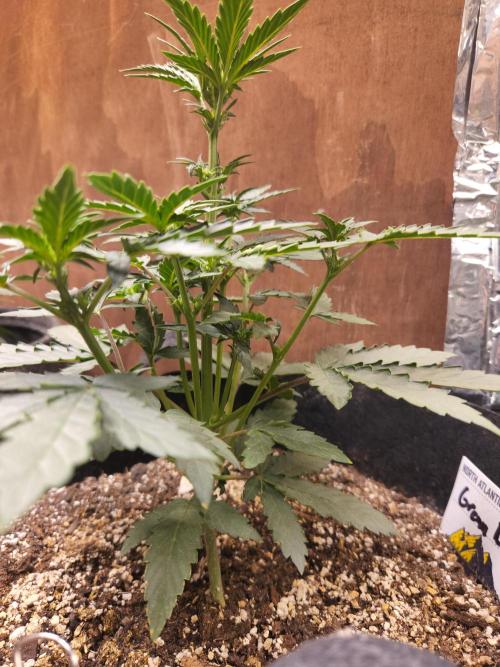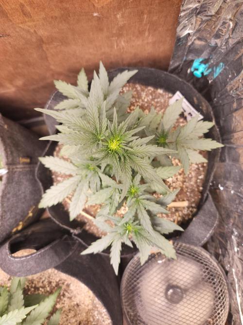SouthWestHesh Light defoliation of major fan leaves blocking light from lower canopy. There seems to be 3 branches that are not rising up to the rest of the lower branches, prohibiting an even canopy. This is unfortunate as it only leaves 5 branches around the main kola.